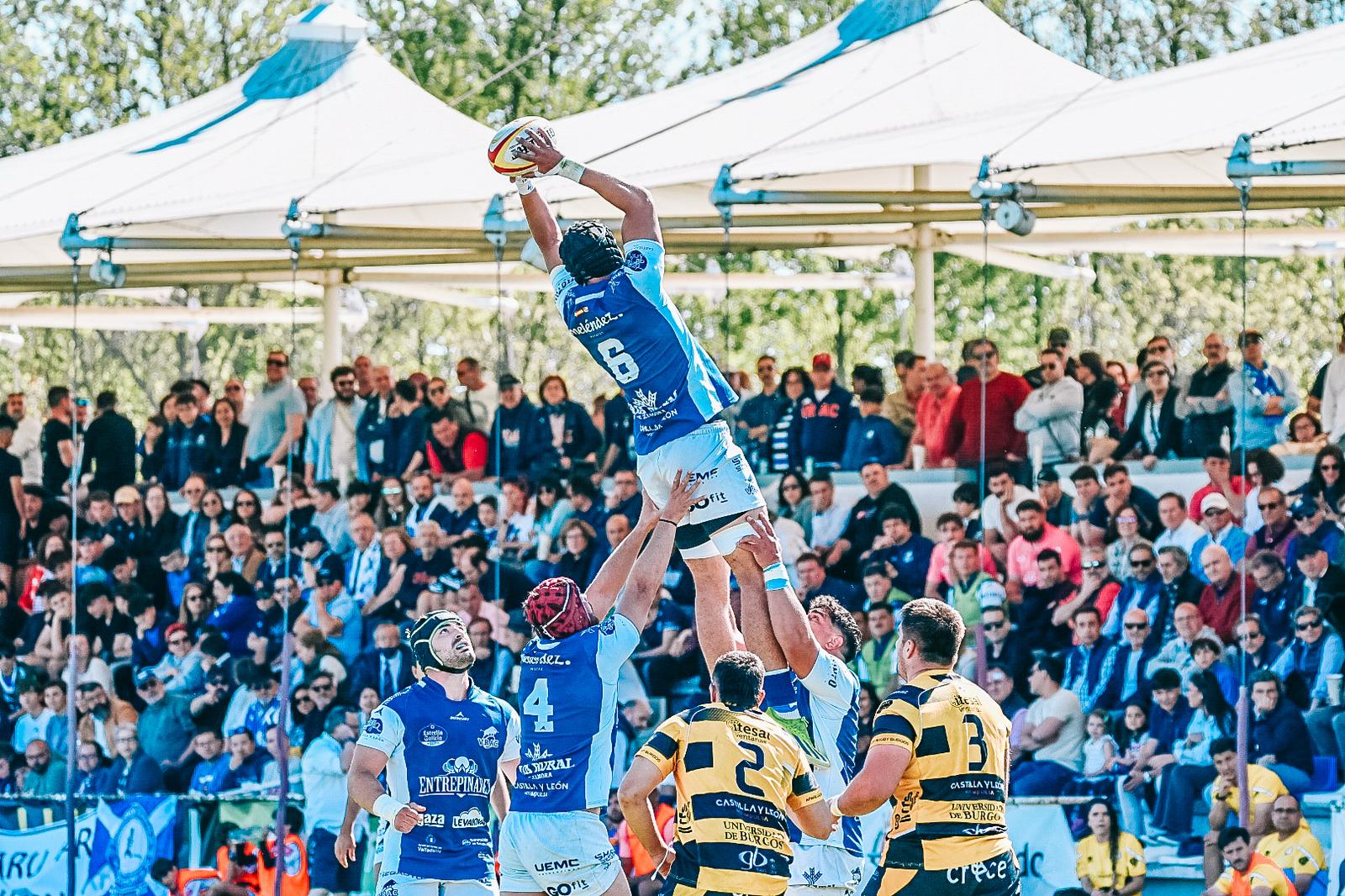 El dominio en melé, incontestable durante todo el partido, se materializaba en una nueva acción de poderío: una melé a cinco metros empujaba al paquete burgalés hasta la línea de marca, y Gabriel Vélez no perdonaba, firmando un ensayo que Sam Hollisworth, implacable a palos, volvía a transformar para poner el 38-10.