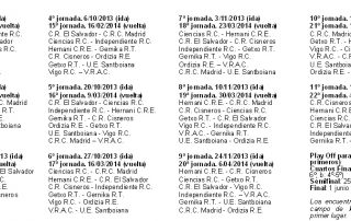 Calendario División de Honor Temporada 2013/2014