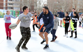 Los alumnos del colegio del barrio de La Pilarica disfrutan con la clase magistral del argentino Mario Barandiaran y de sus jugadores en la cuarta jornada de la actividad de ‘El deporte VA al cole’