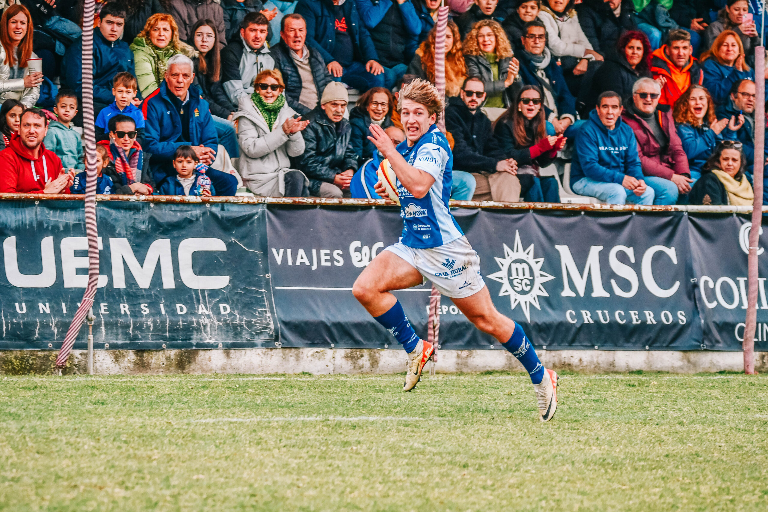 Con una nueva jugada bien ejecutada, el VRAC volvió a tomar el control, ingresando en la zona de veintidós contraria. Álvaro Pírez realizó un lateral para poner el balón en juego, y Teo Marcos no tardó en sumar un ensayo más para los queseros. Javi López transformó con precisión, y el marcador subió a 45-22, reafirmando la superioridad de los queseros