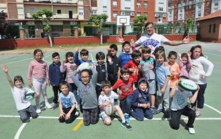 Steve Barnes estuvo con los alumnos del CEIP Gonzalo de Córdoba enseándoles nociones básicas del rugby